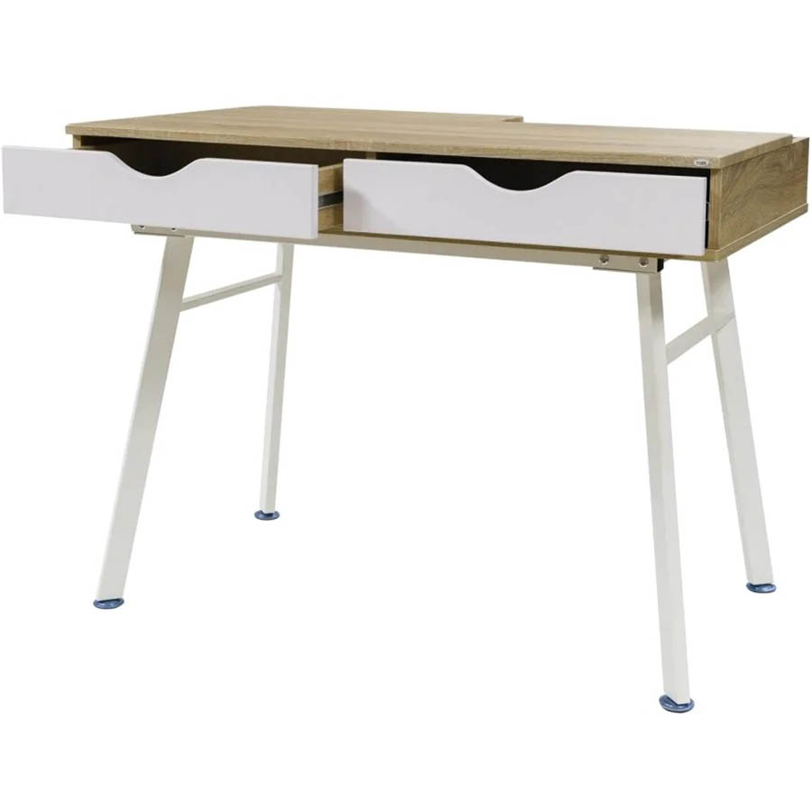 SPECIFICATIONS | Type: Computer desk 2 drawers | Base: Splay legs | Material: MDF and PB with PVC powder-coated steel | Dimensions: 1000(w) x 600(d) x 775(h)mm | Colour: White drawer fronts and frame, Oak top and sides | Warranty: 5 Year | OEM: FIHHOU1060 | Due to freight costs, some orders may incur a delivery charge and this will vary depending on the order, particularly in regional areas. Delivery costs can be confirmed at the time of order. Some items require assembly, if you need help this can be advised at the time of order. A service fee for assembly/installation may also apply. Delivery lead times may apply to some items, this can be confirmed at the time of order